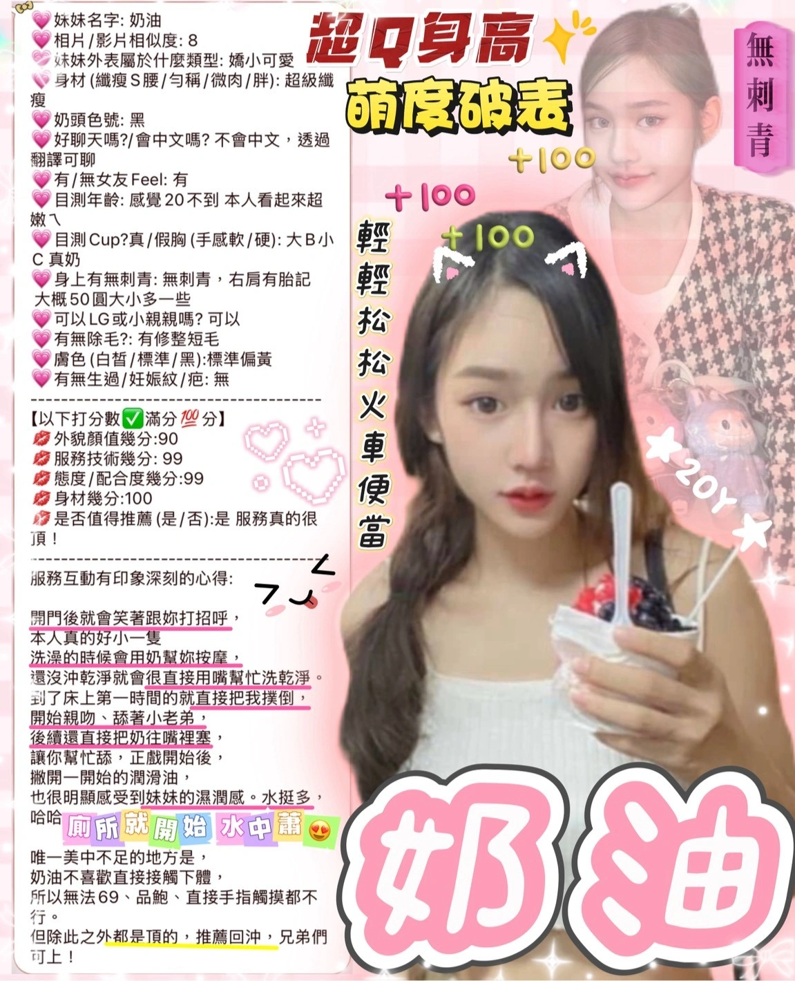 加價項目 : 2S+500,口爆+500,顏射+500