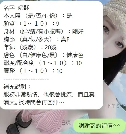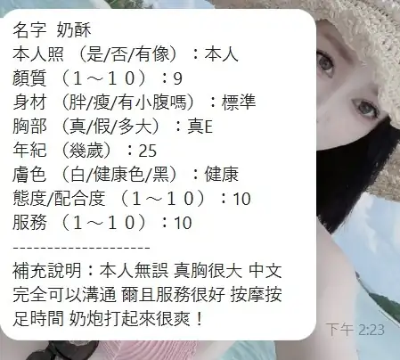 可配合 :奶砲,按摩,69,共浴,可親嘴,無套吹,口爆,品鮑,舔蛋,奶推,絲襪,玩具(按摩棒),玩具(跳蛋),情趣用品(客自備),自慰秀,快餐,2S