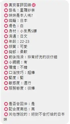加價項目 : 打槍+200,攝影+10000,無套外射+4000,無套內射+7000,自慰秀+2000,口爆+2000,噴水+2000,情趣用品+2000(客自備),車資依地區計價
