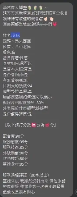 馬來妹定點 台中北區定點 – 艾比