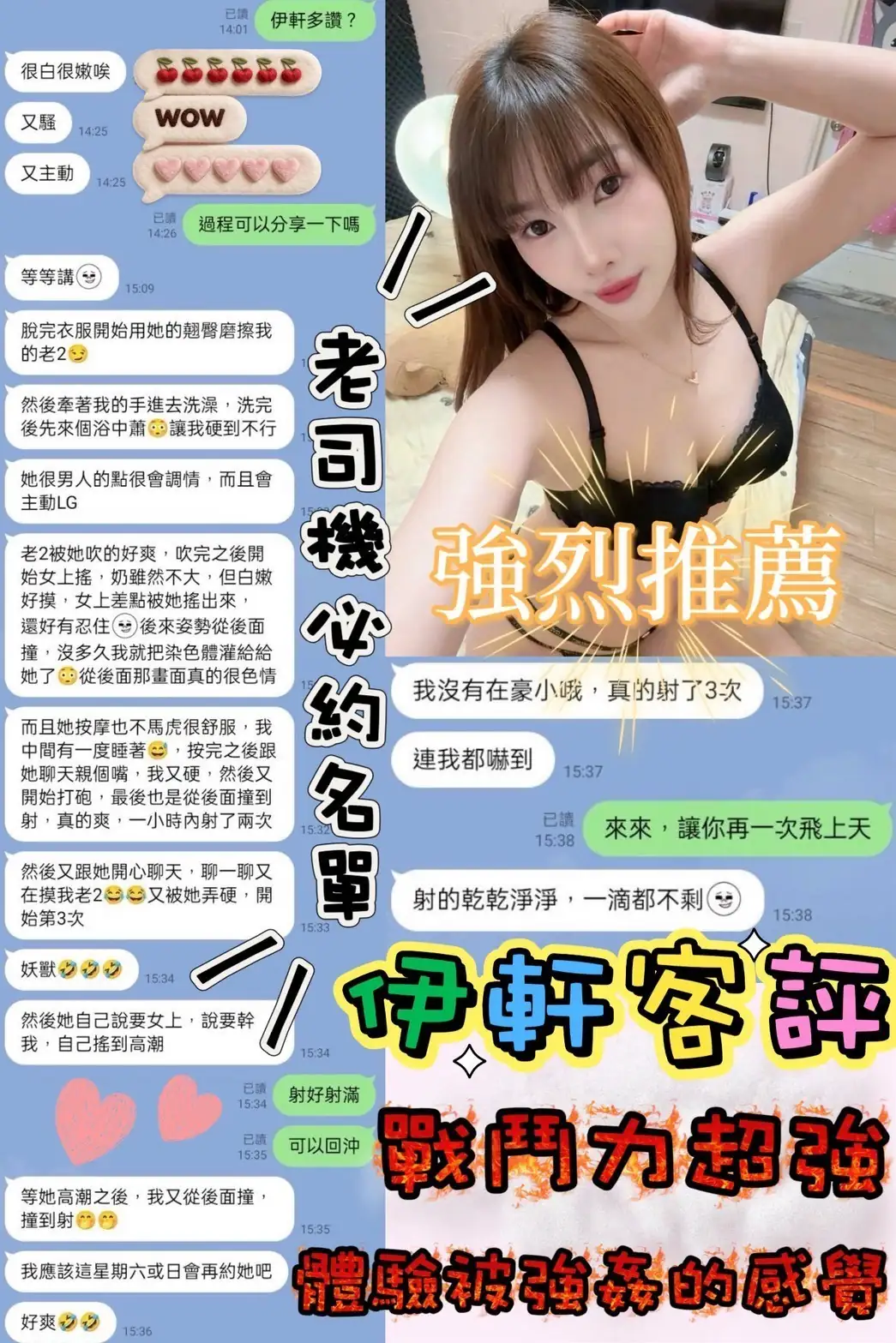 加價項目 : 2S+500,口爆+500,自慰秀+500,艷舞秀+300,絲襪+100,0.01套+100,無套內射+1000
