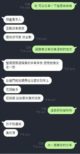 可配合 :奶砲,按摩,69,殘廢澡,泰國浴,LG(舌吻)依氣氛衛生而定,可親嘴,無套吹,品鮑,舔蛋,屁推,快餐,2S