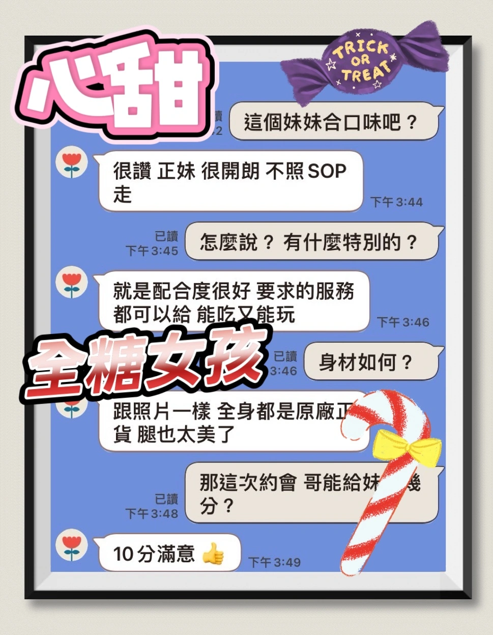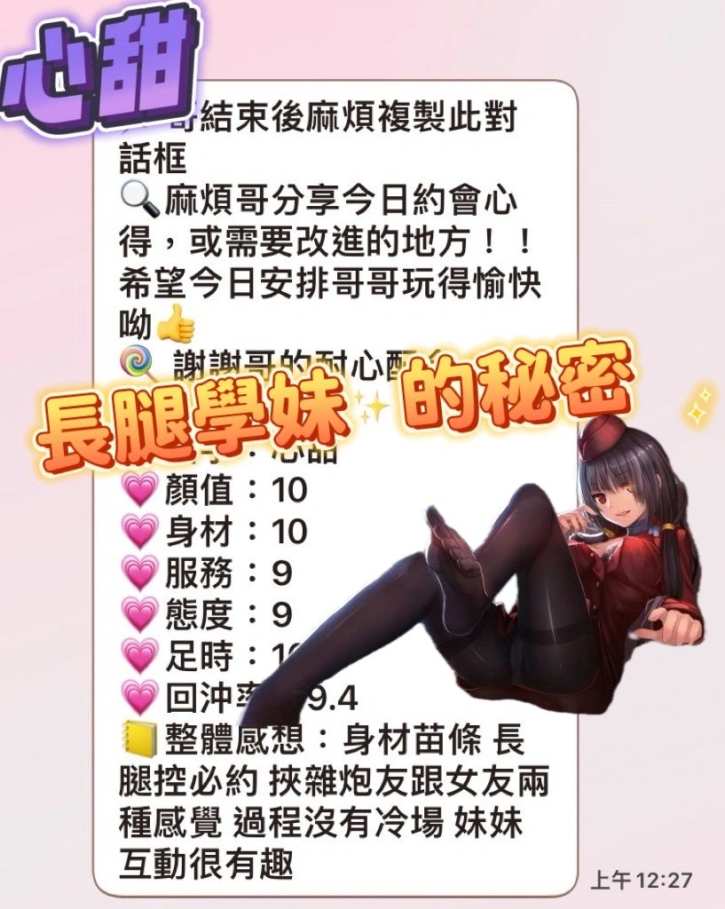 可配合 :奶砲,按摩,69,共浴,殘廢澡,LG(舌吻)依氣氛衛生而定,可親嘴,無套吹,品鮑,舔蛋,輕功,顏射,快餐,2S,包夜