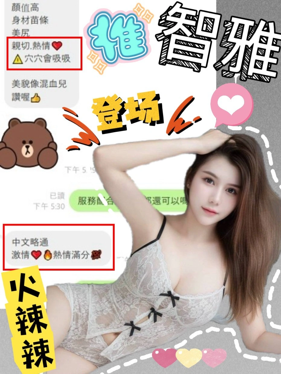 可配合 :奶砲,按摩,69,共浴,LG(舌吻)依氣氛衛生而定,可親嘴,無套吹,口爆,吞精,品鮑,舔蛋,奶推,屁推,顏射,絲襪(自備免付),情趣用品(客自備),英文溝通,快餐,2S