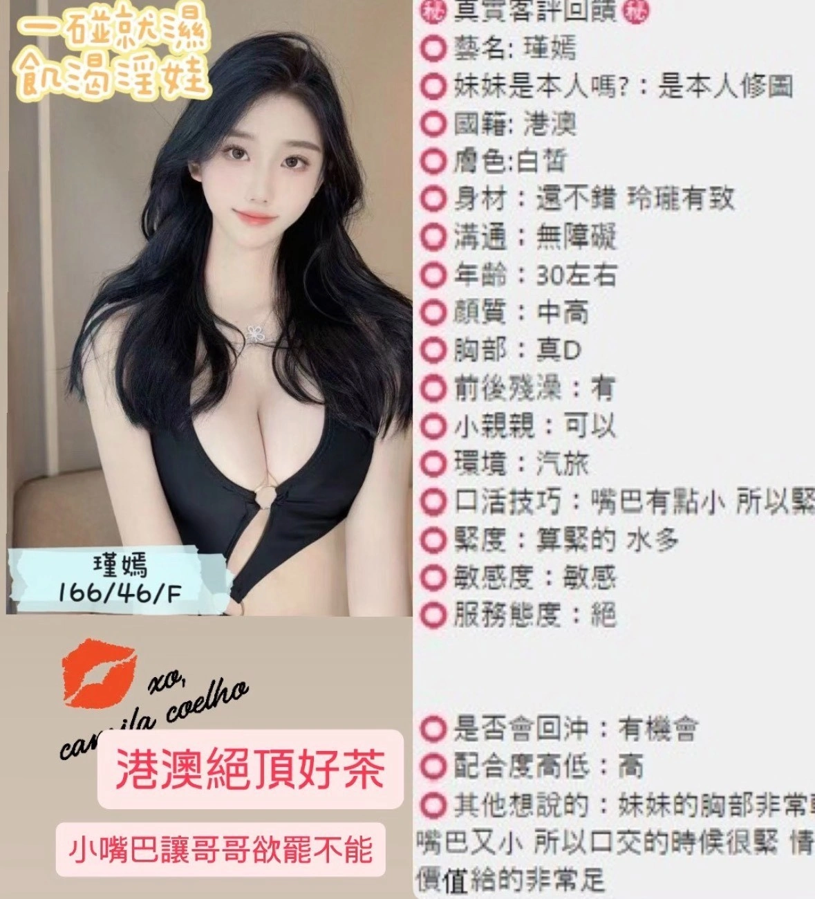 可配合 :奶砲,毒龍,按摩,69,殘廢澡,無套吹,口爆,品鮑,過水,漫遊,奶推,屁推,冰火,變裝,絲襪,玩具(按摩棒),玩具(跳蛋),情趣用品(客自備),2S,包夜