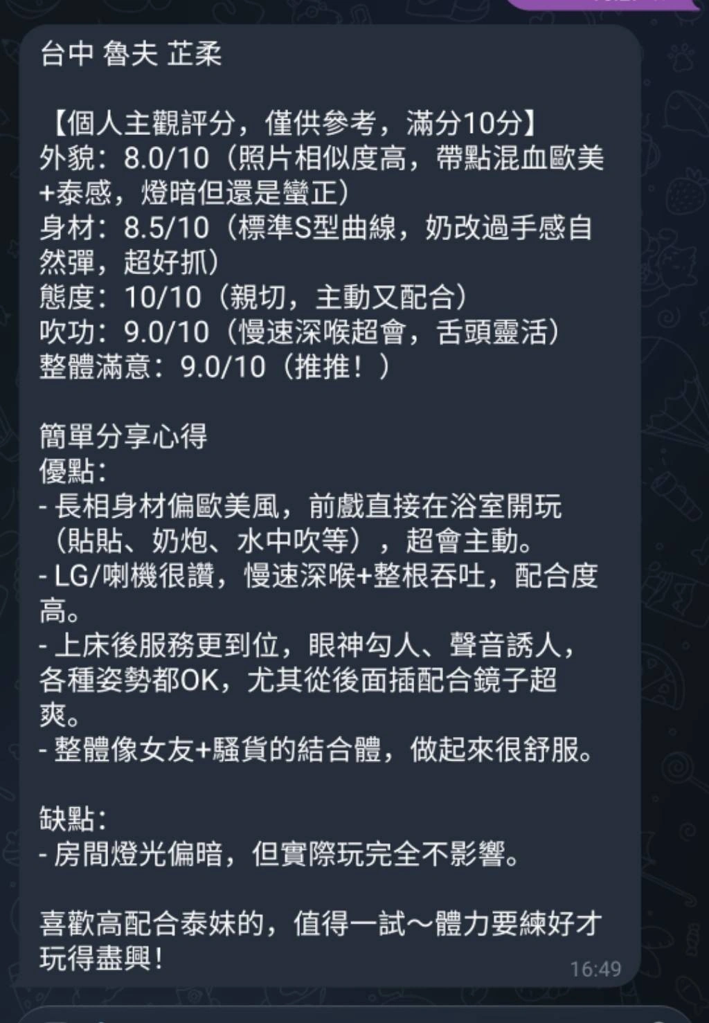 可配合 :奶砲,按摩,69,殘廢澡,LG(舌吻)依氣氛衛生而定,可親嘴,無套吹,口爆,品鮑,舔蛋,奶推,屁推,顏射,浴中蕭,深喉嚨,艷舞秀,變裝(自備免付),絲襪(自備免付),玩具(按摩棒),玩具(跳蛋),攝影,快餐,2S,包夜