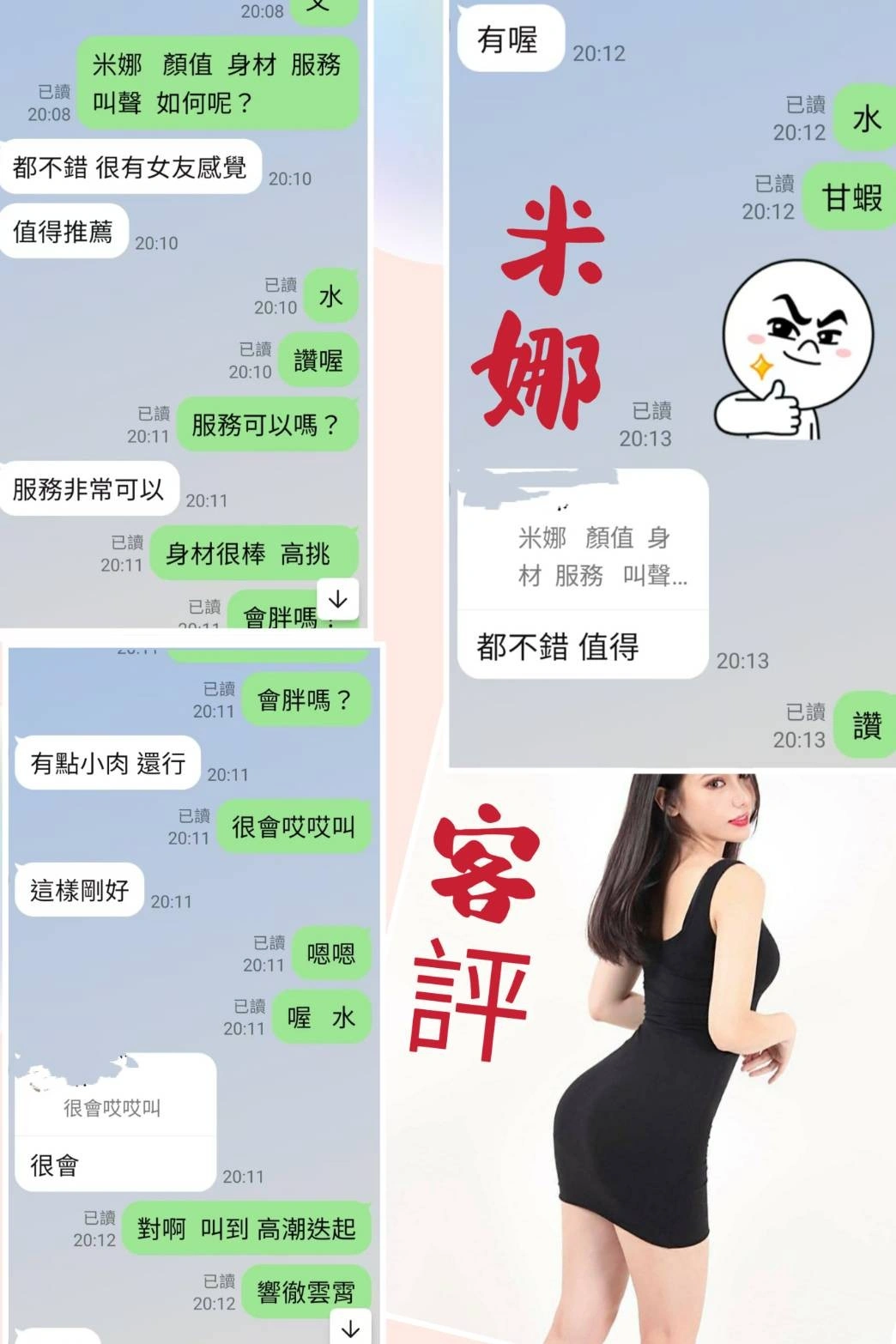 可配合 :奶砲,69,LG(舌吻)依氣氛衛生而定,可親嘴,無套吹,舔蛋,輕功,漫遊,浴中蕭,深喉嚨,無套做,快餐,2S,射後清槍