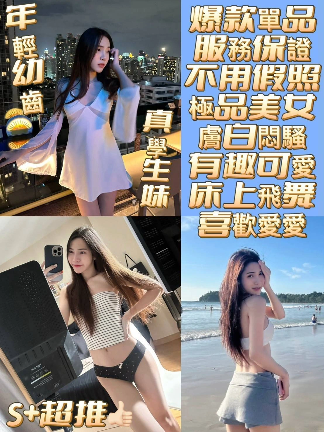 加價項目 : 2S+500,口爆+500,自慰秀+500,後門+1000,攝影+1000(不露臉)