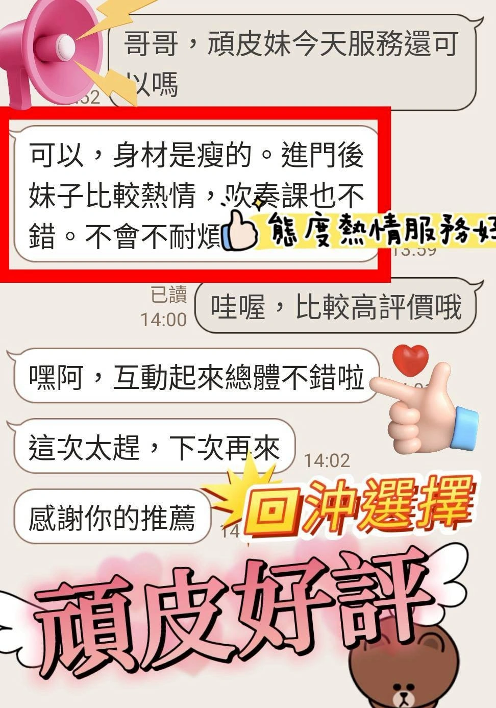 可配合 :奶砲,按摩,69,共浴,LG(舌吻)依氣氛衛生而定,可親嘴,無套吹,品鮑,奶推,顏射,浴中蕭,變裝(自備免付),絲襪,無套做,自慰秀,快餐,2S