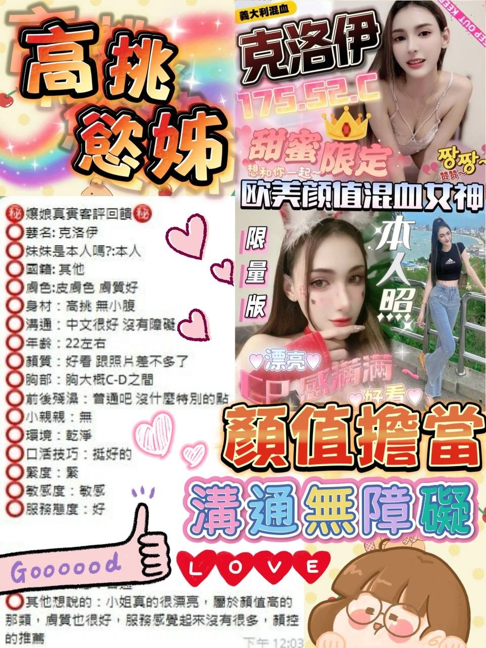 可配合 :奶砲,毒龍,裸舌毒龍,按摩,69,共浴,殘廢澡,無套吹,足交,舔蛋,奶推,屁推,浴中蕭,深喉嚨,變裝(自備免付),絲襪(自備免付),玩具(按摩棒),玩具(跳蛋),情趣用品(客自備),自慰秀,中文溝通,快餐,2S,射後清槍