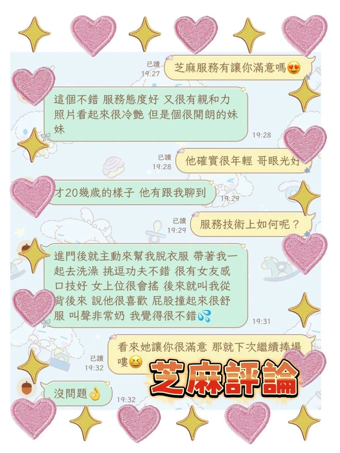 可配合 :奶砲,按摩,69,共浴,LG(舌吻)依氣氛衛生而定,可親嘴,無套吹,品鮑,舔蛋,奶推,屁推,冰火,絲襪,快餐,2S