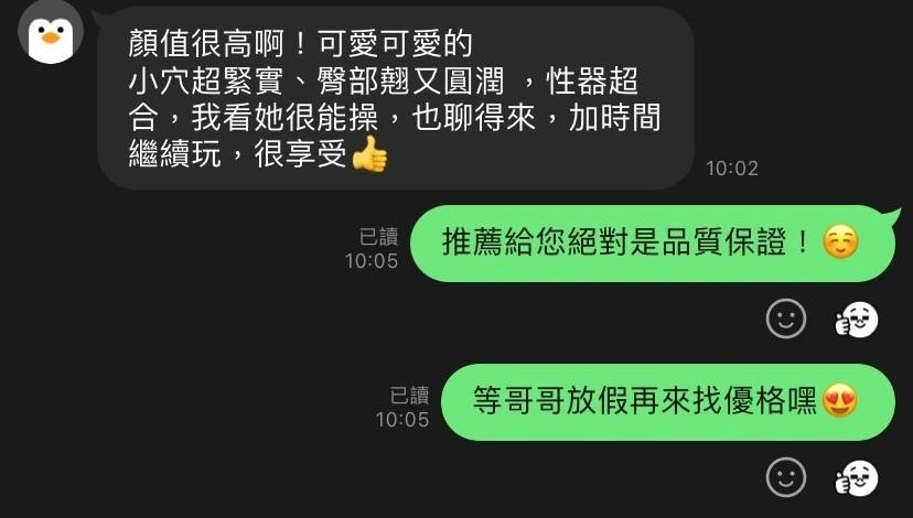 可配合 :奶砲,按摩,共浴,LG(舌吻)依氣氛衛生而定,可親嘴,無套吹,奶推,屁推,顏射,絲襪(自備免付),玩具(按摩棒),玩具(跳蛋),情趣用品(客自備),快餐,2S