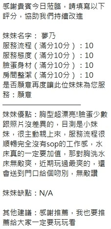 加價項目 : 2S+500(60分),口爆+500,顏射+500,水床+300