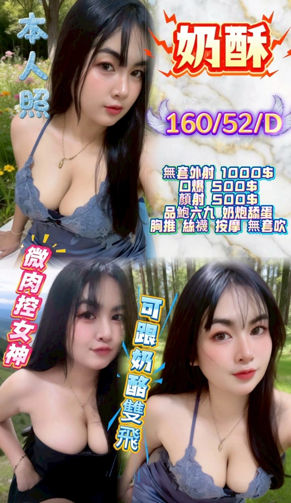 加價項目 : 2S+500(60分),口爆+500,顏射+500,無套外射+1000