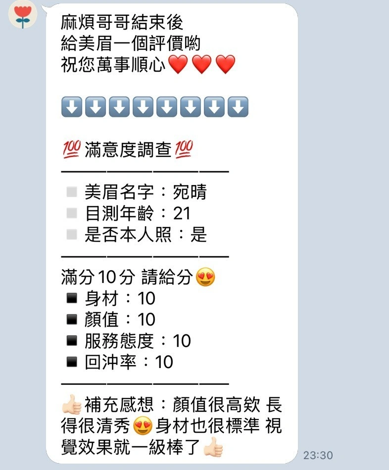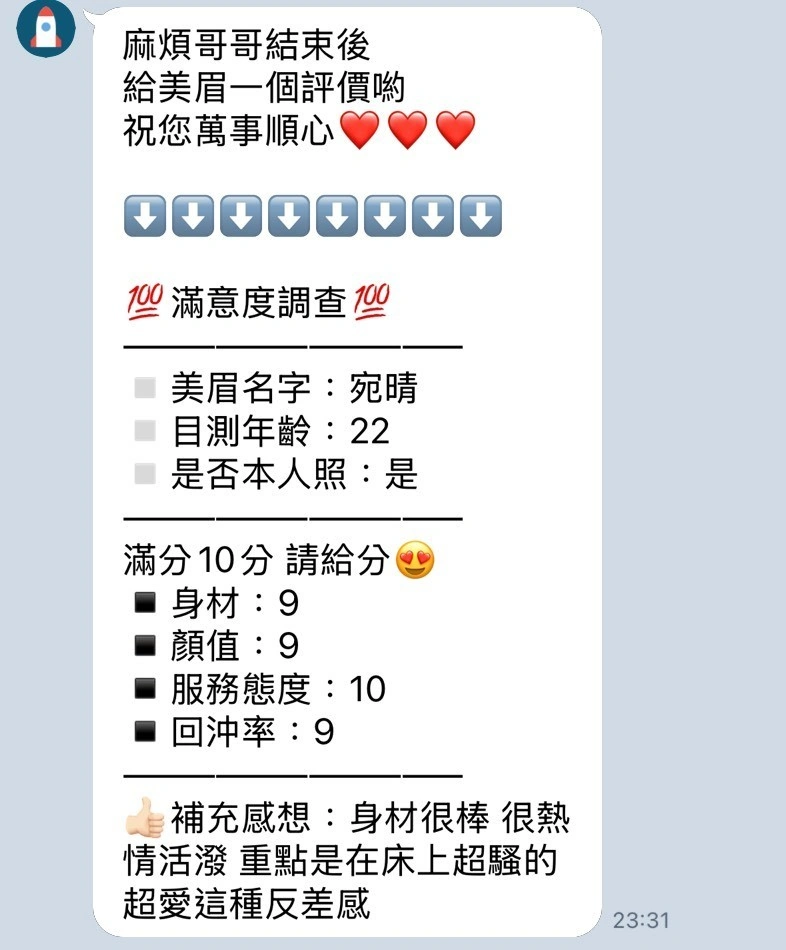 可配合 :毒龍,按摩,69,LG(舌吻)依氣氛衛生而定,可親嘴,無套吹,品鮑,奶推,屁推,顏射,變裝,無套做,自慰秀,快餐,2S
