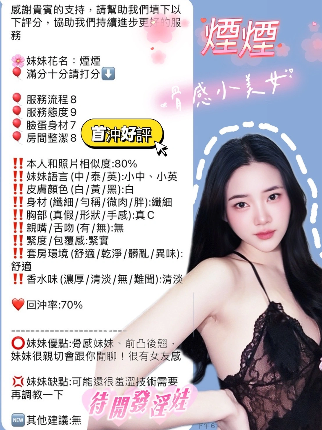 國别:泰妹 年齡:? 身高:160
