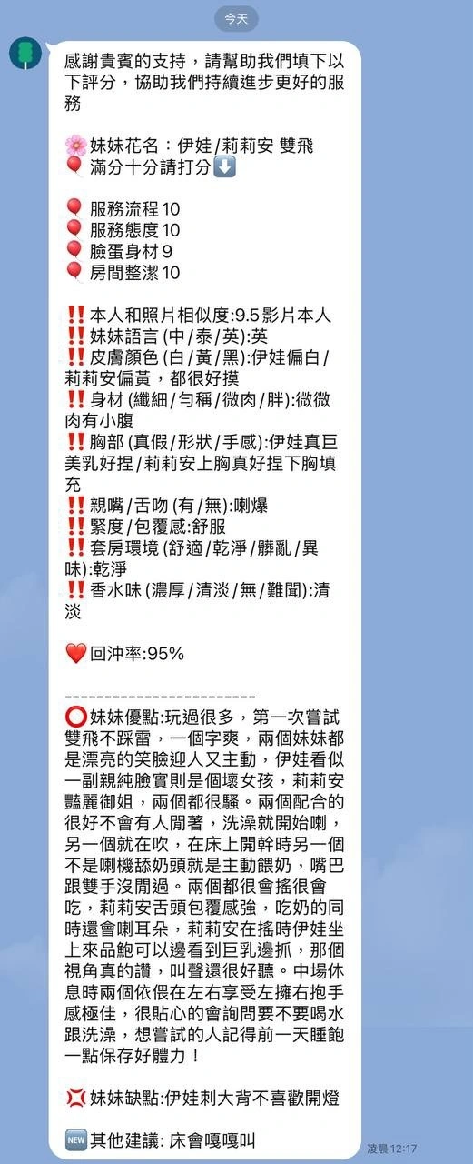 可配合 :奶砲,按摩,69,LG(舌吻)依氣氛衛生而定,可親嘴,口爆,品鮑,舔蛋,奶推,屁推,冰火,顏射,變裝(自備免付),絲襪(自備免付),自慰秀,英文溝通,快餐,2S