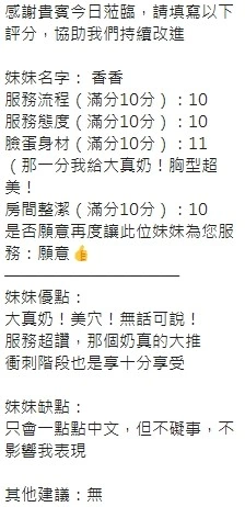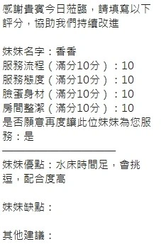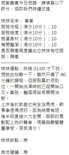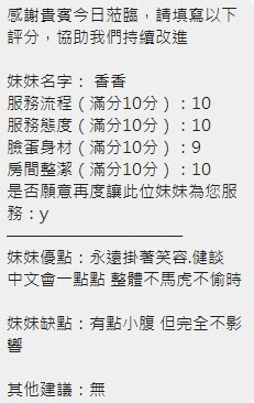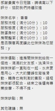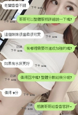 可配合 :奶砲,按摩,69,共浴,LG(舌吻)依氣氛衛生而定,可親嘴,無套吹,品鮑,舔蛋,奶推,屁推,水床浴,變裝(自備免付),絲襪(自備免付),中文溝通,快餐,2S