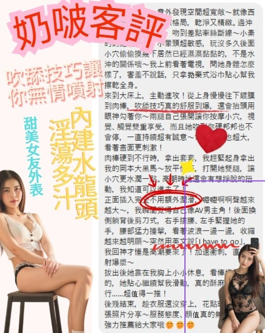 可配合 :奶砲,按摩,69,共浴,LG(舌吻)依氣氛衛生而定,可親嘴,無套吹,口爆,品鮑,顏射,絲襪,玩具(按摩棒),玩具(跳蛋),情趣用品(客自備),無套做,自慰秀,英文溝通,快餐,2S