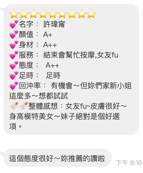 可配合 :奶砲,按摩,69,共浴,可親嘴,無套吹,品鮑,舔蛋,奶推,屁推,顏射,深喉嚨,艷舞秀,絲襪(自備免付),玩具(按摩棒),玩具(跳蛋),情趣用品(客自備),無套做,無套內射,後門,自慰秀,快餐,2S