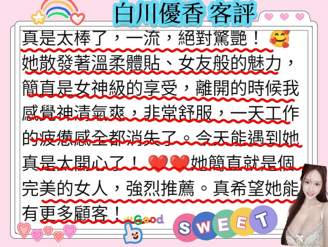 可配合 :毒龍,69,殘廢澡,可親嘴,無套吹,口爆,吞精,品鮑,屁推,顏射,變裝,玩具(按摩棒),玩具(跳蛋),情趣用品(客自備),自慰秀,攝影,2S