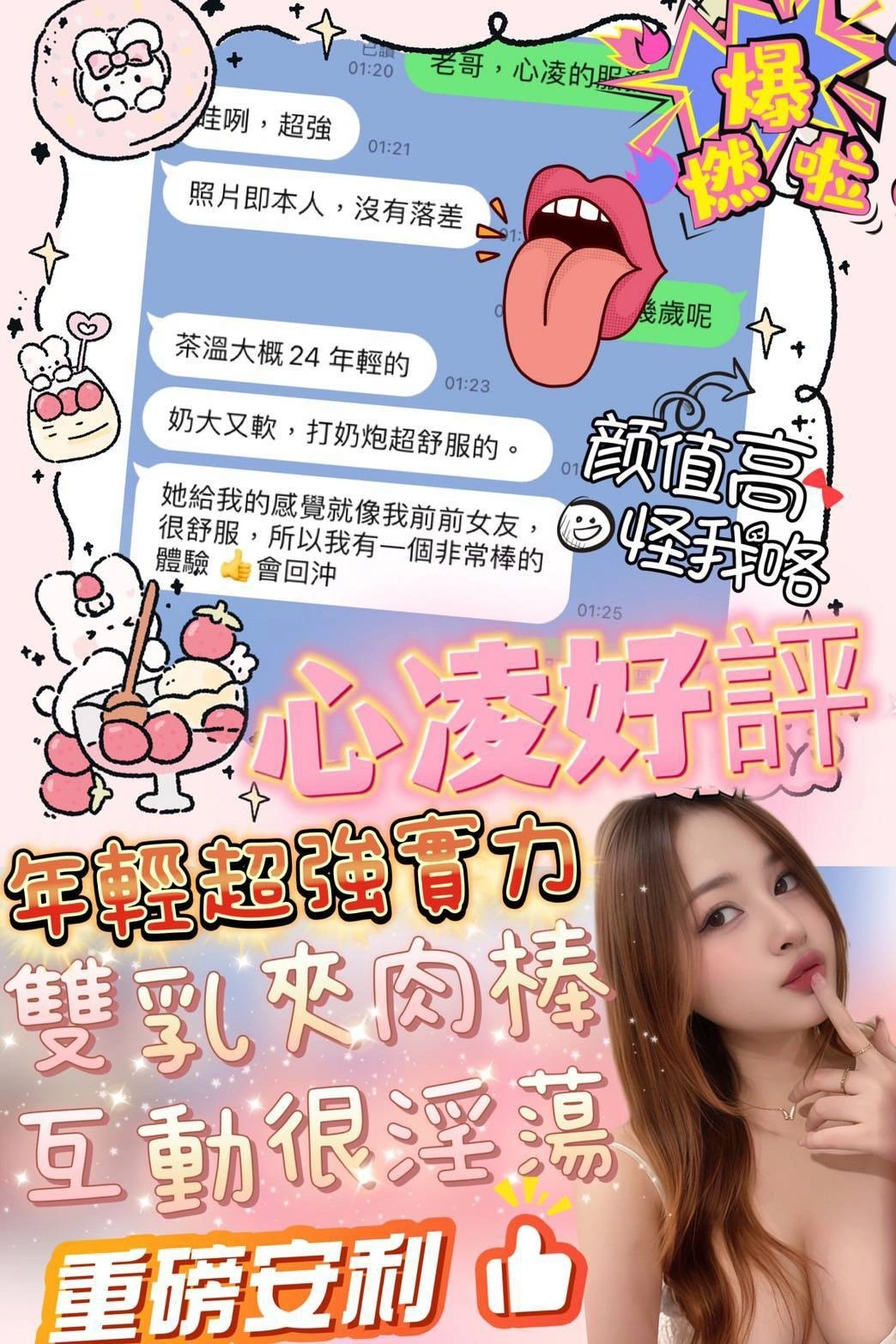 加價項目 : 2S+500,口爆+500,顏射+500,無套外射+500,無套內射+1000