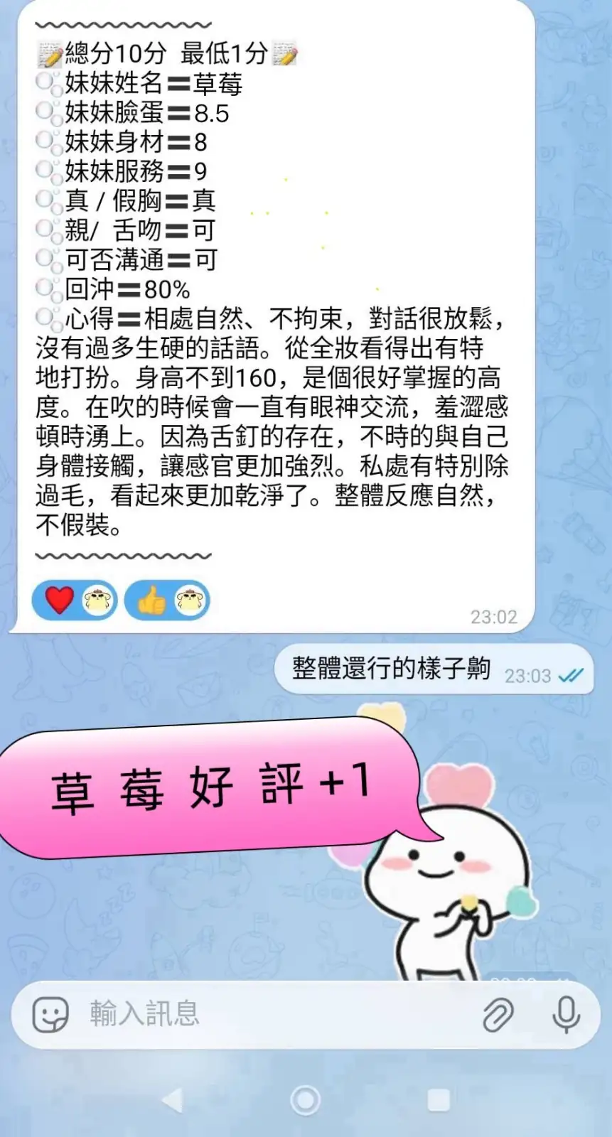可配合 :按摩,69,共浴,LG(舌吻)依氣氛衛生而定,可親嘴,無套吹,舔蛋,奶推,無套做