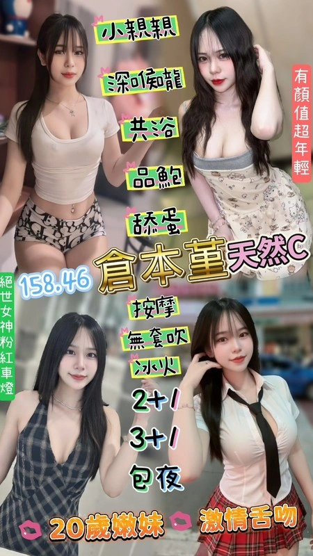 可配合 :奶砲,按摩,69,陪洗,共浴,殘廢澡,LG(舌吻)依氣氛衛生而定,可親嘴,無套吹,品鮑,舔蛋,快餐,2S