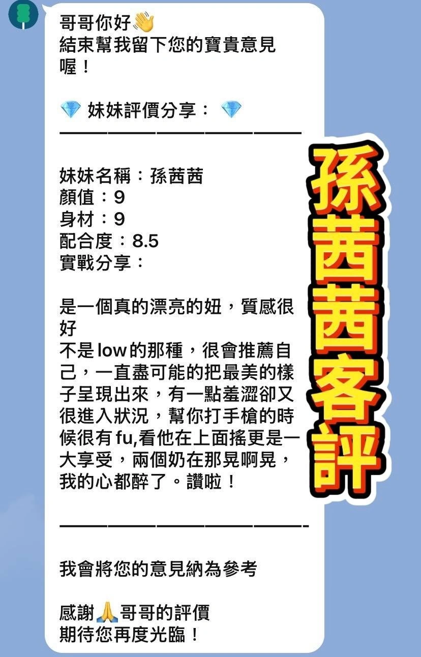 可配合 :奶砲,毒龍,按摩,69,殘廢澡,LG(舌吻)依氣氛衛生而定,可親嘴,無套吹,品鮑,舔蛋,奶推,屁推,深喉嚨,絲襪(自備免付),快餐,2S