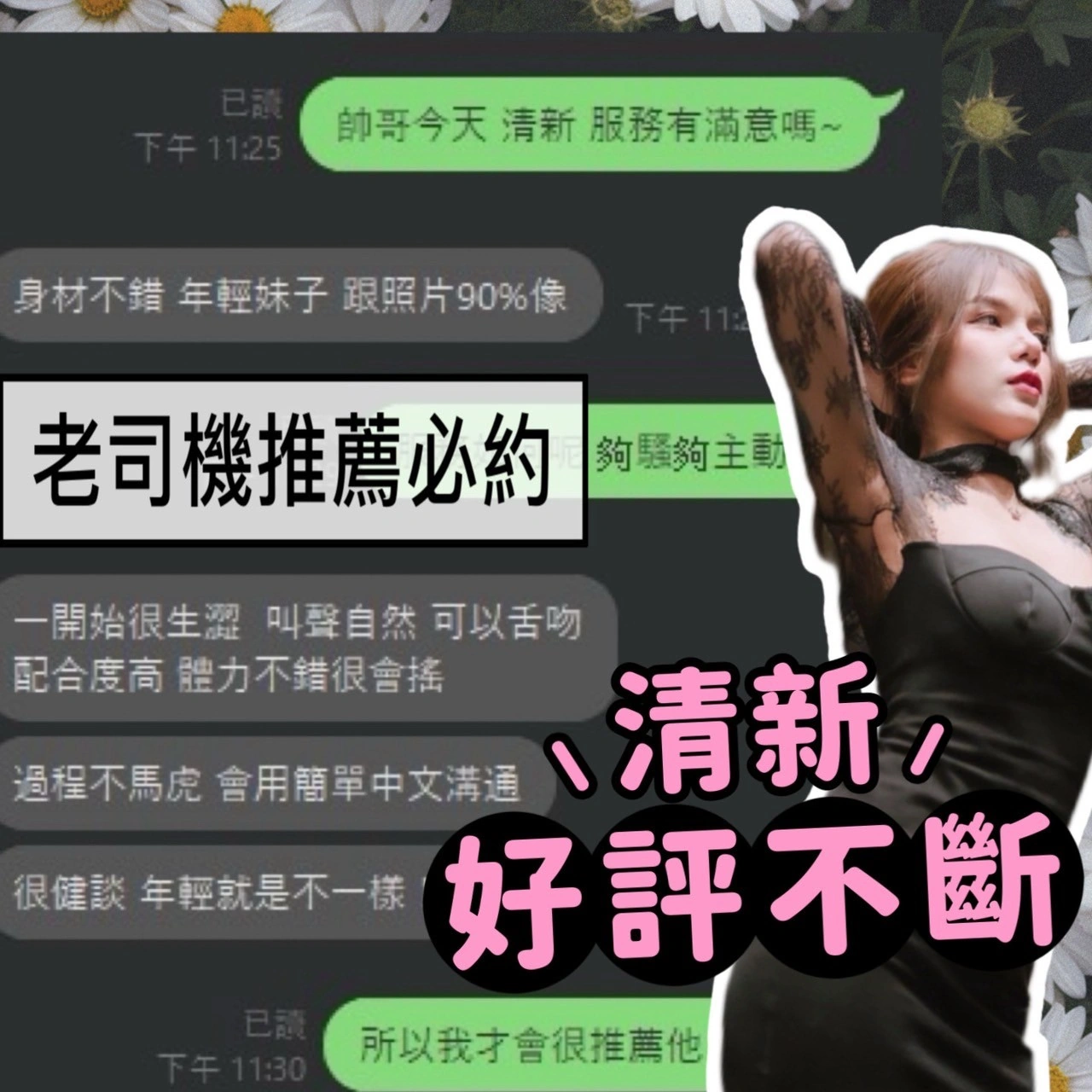 可配合 :奶砲,按摩,共浴,LG(舌吻)依氣氛衛生而定,可親嘴,無套吹,舔蛋,絲襪,無套做,無套內射,快餐,2S