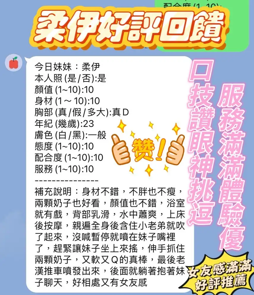 可配合 :奶砲,按摩,69,共浴,帝王浴,可親嘴,無套吹,口爆,品鮑,舔蛋,奶推,冰火,顏射,浴中蕭,變裝(自備免付),絲襪(自備免付),自慰秀,快餐,2S